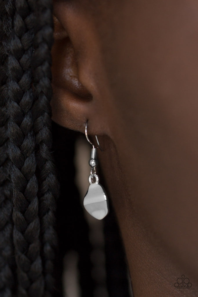 Delicately hammered in a glistening shimmer, asymmetrical silver frames link at the bottom of a lengthened black suede strand for a bold artisanal look. Features an adjustable clasp closure.