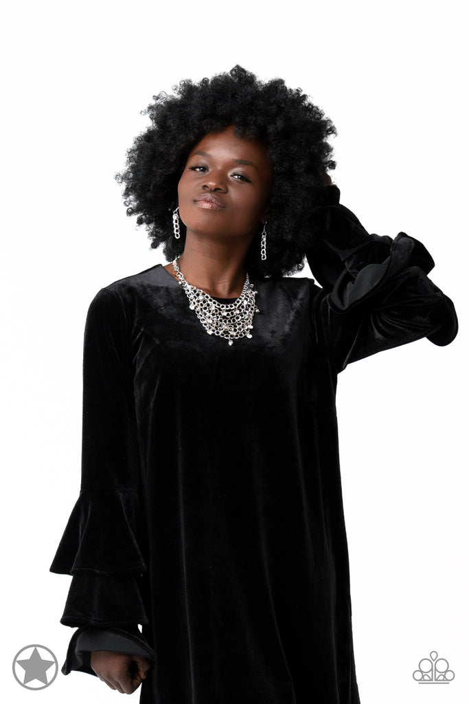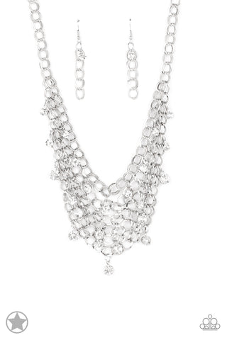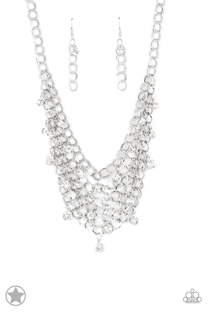 A collar of layered interlocking silver chain provides the canvas for gorgeous clear rhinestones to sway delicately. Features an adjustable clasp closure.