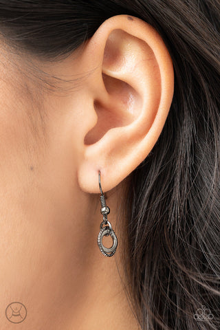 Dainty pairs of textured gunmetal hoops and rings link with pinched gunmetal fittings around the neck, resulting in a gritty vibe. Features an adjustable clasp closure.