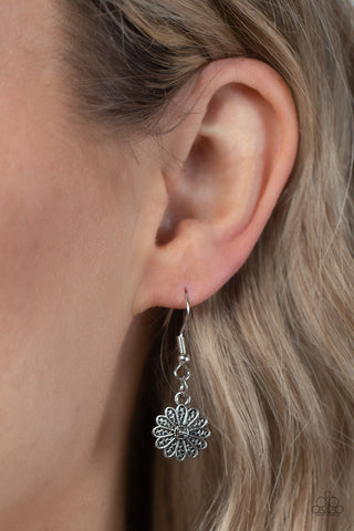 Infused with a whimsical mandala-like motif, tactile silver petals bloom from pink rhinestone dotted centers below the collar. The mismatched silver flowers gradually increase in size, exaggerating the eye-catching details. Features an adjustable clasp closure.