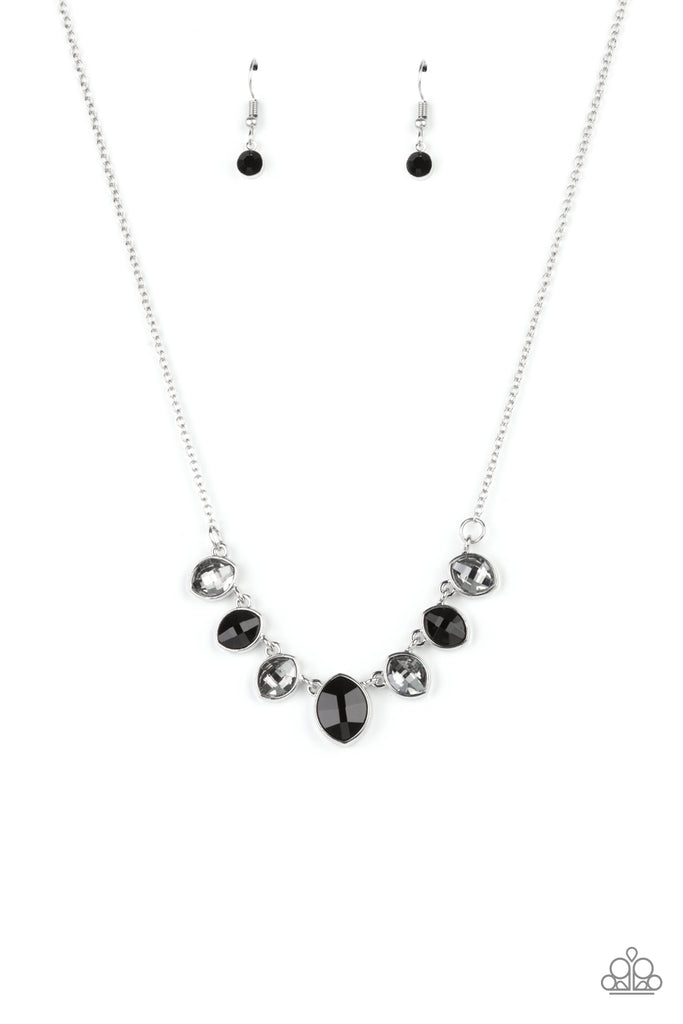 Encased in sleek silver fittings, elegant cut smoky and black rhinestones delicately connect below the collar. An oversized black rhinestone adorns to the middle of the glittery strand, creating a sparkly centerpiece. Features an adjustable clasp closure.