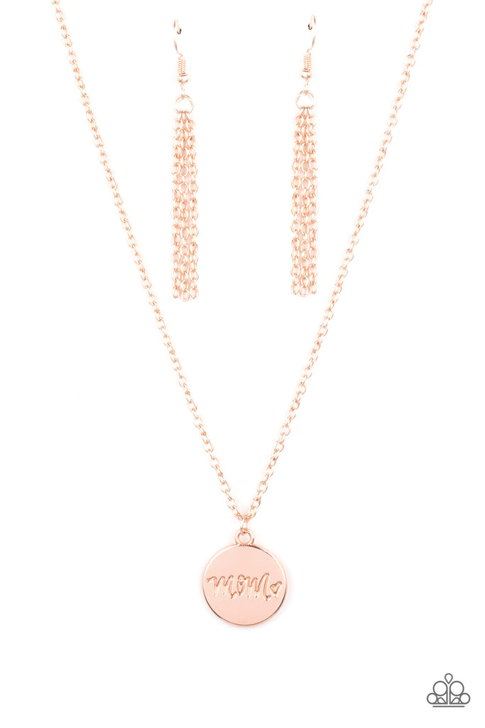 A dainty heart engraved next to the word "Mom" on a shiny rose gold disc creates a sweet memento as it falls below the collar. Features an adjustable clasp closure.