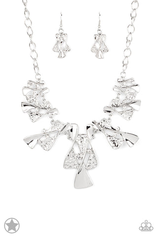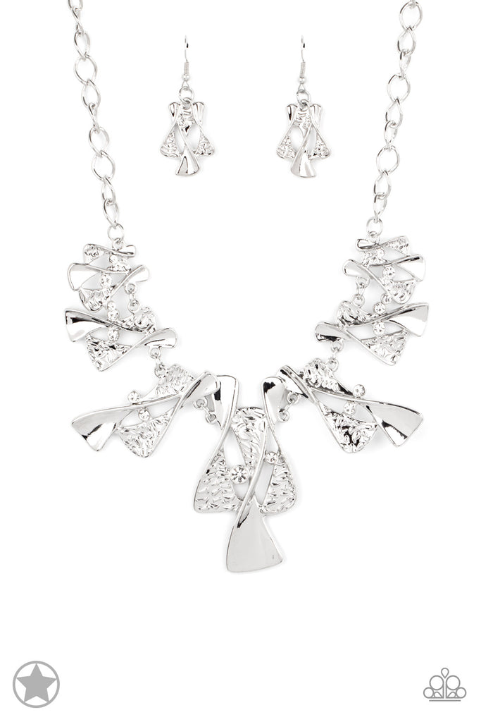 Twisted silver hourglasses dance along a chunky silver chain with tiny clear rhinestones adding sparkling, elegant accents. Beautiful textured pieces add depth to the design. Features an adjustable clasp closure.